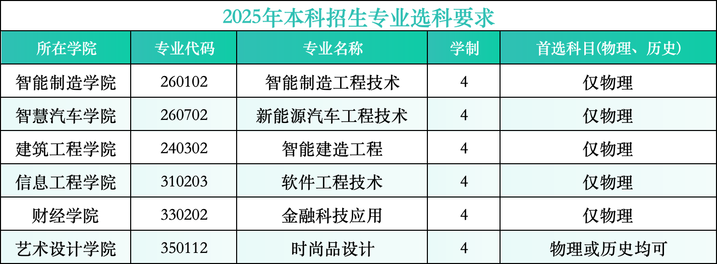 6个本科专业均为四年学制。其中,除时尚品设计专业的首选科目为物理或历史均可,其余专业的首选科目均为物理。